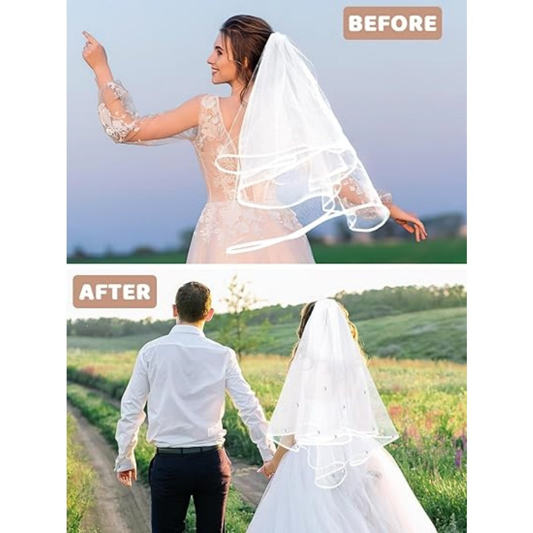 Bridal Veil Wedding Veil Weights Short 2 Tier Veil And 12 Pairs Veil Weights Magnetic Double Sided Artificial Pearls Silver Button For Bachelorette Party Bridal Shower Veil First Communion-Clearance